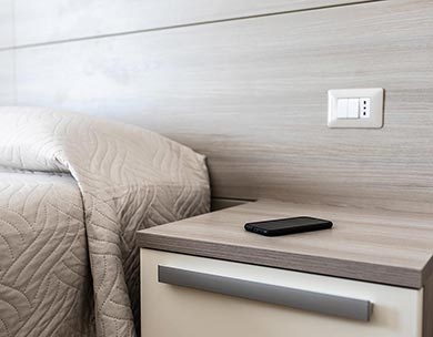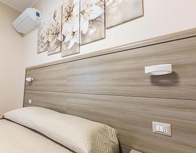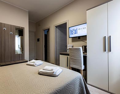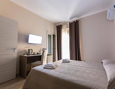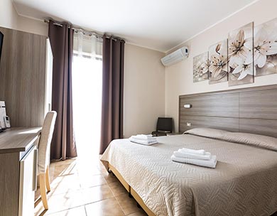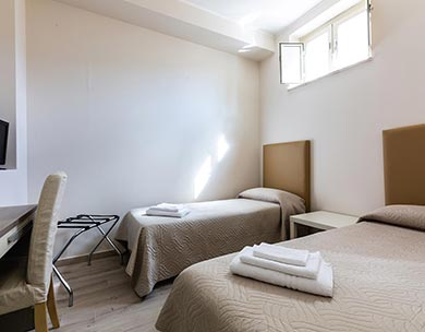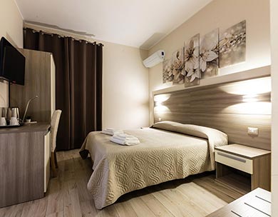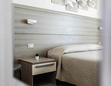 Le “Camere Standard” sono composte da un letto matrimoniale o due letti singoli, con possibilità di letti aggiuntivi. Arredamento moderno con design neutro realizzato con tonalità rilassanti, che creano nella loro semplicità serenità e benessere.