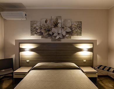 Tutte le camere offrono ampie finestre che inondano di luce solare l’ambiente. Camere a misura di cliente dotate di ogni necessità, confortevoli e funzionali: aria condizionata, TV satellitare a schermo piatto, Wi-Fi, guardaroba, cassaforte di sicurezza, minibar, bollitore tè/acqua calda. Bagno privato con box doccia, asciugacapelli, set cortesie.
